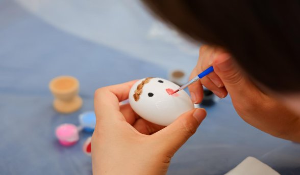 手工体验环节,大家围桌而坐,填充香料、绑扎丝带、装饰香囊,用画笔和颜料装饰自己最特别的那颗彩蛋……一笔一划充满喜悦、饱含祝福。