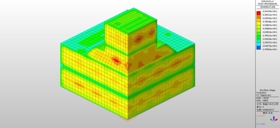 大体积混凝土水化热分析对保障混凝土结构的耐久性、安全性和施工效率具有重要意义。通过水化热分析能预测混凝土内部温度的变化,并根据分析结果合理布置冷水管,从而减少温度应力,降低混凝土结构变形和开裂的风险。